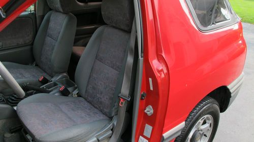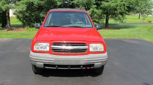 This Tracker is in beautiful condition! The engine runs well. Plenty of power with the 2.0 liter engine. It is the perfect combination of power and fuel economy. Does not leak any oil. It looks great with the aluminum wheels. Stored in a garage and you can tell by the bright shiny red paint. Fun to drive with the top down on a nice day or play in the snow with the 4-wheel drive. Last summer the AC was replaced and new tires installed. This year, a new soft top - it is in great shape. The radiator was also replaced. A fun SUV to drive!