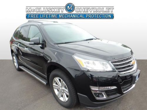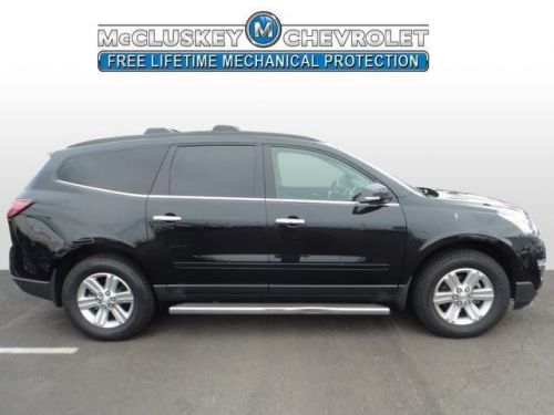 McCluskey Chevrolet proudly provides a FREE, LIFETIME MECHANICAL PROTECTION on this vehicle. Wow! Where do I start?! Your satisfaction is our business! How do you beat the price at the pump? Just try this this fuel-efficient 2014 Chevrolet Traverse on for size, that's how. This fantastic Chevrolet is one of the most sought after used vehicles on the market because it NEVER lets owners down. This Traverse is nicely equipped with features such as 3.16 Axle Ratio, 3rd row seats: split-bench, 4-Wheel Disc Brakes, 6 Speakers, 8-Passenger Seating (2-3-3 Seating Configuration), 8-Way Power Driver Seat w/Power Lumbar, ABS brakes, Air Conditioning, Alloy wheels, Body-Color Bodyside Moldings, Body-Color Heated Power-Adjustable Outside Mirrors, Bodyside moldings, Brake assist, Bumpers: body-color, CD player, Delay-off headlights, Driver door bin, Driver vanity mirror, Dual front impact airbags, Dual front side impact airbags, Electronic Stability Control, Emergency communication system, Enhanced Driver Information Center, Four wheel independent suspension, Front anti-roll bar, Front Bucket Seats, Front Center Armrest w/Storage, Front Fog Lamps, Front fog lights, Front reading lights, Fully automatic headlights, Heated door mirrors, Illuminated entry, Leather-Wrapped Steering Wheel, Low tire pressure warning, MP3 decoder, Occupant sensing airbag, Outside temperature display, Overhead airbag, Panic alarm, Passenger door bin, Passenger vanity mirror, Power door mirrors, Power driver seat, Power steering, Power windows, Premium Cloth Seat Trim, Radio data system, Rear air conditioning, Rear anti-roll bar, Rear reading lights, Rear seat center armrest, Rear window defroster, Rear window wiper, Reclining Front Bucket Seats, Redundant Audio Controls on Steering Wheel, Remote keyless entry, Roof rack: rails only, Security system, Single-Zone Manual Front Climate Control, SiriusXM Satellite Radio, Speed control, Speed-sensing steering, Split folding rear seat, Spoiler, Steering wheel m