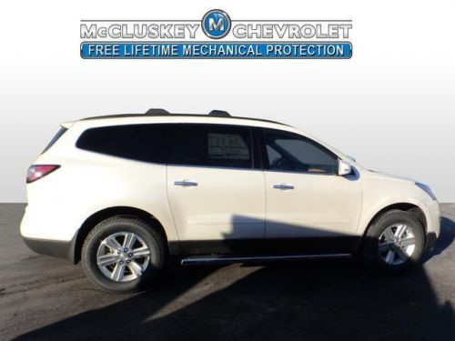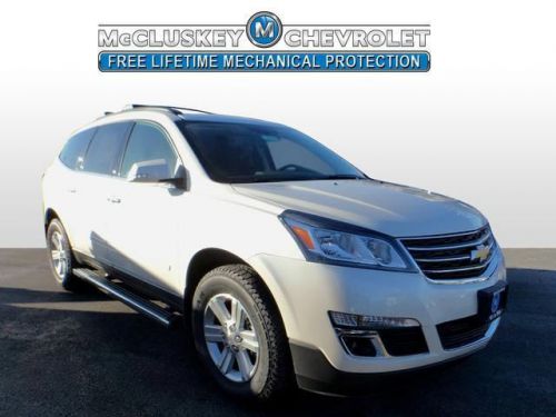 McCluskey Chevrolet proudly provides a FREE, LIFETIME POWERTRAIN PROTECTION on this vehicle! Wow! What a sweetheart! Your satisfaction is our business! Chevrolet has outdone itself with this charming 2014 Chevrolet Traverse. It just doesn't get any better or more gas-saving. It is nicely equipped with features such as 3.16 Axle Ratio, 3rd row seats: split-bench, 4-Wheel Disc Brakes, 6 Speakers, 8-Passenger Seating (2-3-3 Seating Configuration), 8-Way Power Driver Seat w/Power Lumbar, ABS brakes, Air Conditioning, Alloy wheels, Body-Color Bodyside Moldings, Body-Color Heated Power-Adjustable Outside Mirrors, Bodyside moldings, Brake assist, Bumpers: body-color, CD player, Delay-off headlights, Driver door bin, Driver vanity mirror, Dual front impact airbags, Dual front side impact airbags, Electronic Stability Control, Emergency communication system, Enhanced Driver Information Center, Four wheel independent suspension, Front anti-roll bar, Front Bucket Seats, Front Center Armrest w/Storage, Front Fog Lamps, Front fog lights, Front reading lights, Fully automatic headlights, Heated door mirrors, Illuminated entry, Leather-Wrapped Steering Wheel, Low tire pressure warning, MP3 decoder, Occupant sensing airbag, Outside temperature display, Overhead airbag, Panic alarm, Passenger door bin, Passenger vanity mirror, Power door mirrors, Power driver seat, Power steering, Power windows, Premium Cloth Seat Trim, Radio data system, Rear air conditioning, Rear anti-roll bar, Rear reading lights, Rear seat center armrest, Rear window defroster, Rear window wiper, Reclining Front Bucket Seats, Redundant Audio Controls on Steering Wheel, Remote keyless entry, Roof rack: rails only, Security system, Single-Zone Manual Front Climate Control, SiriusXM Satellite Radio, Speed control, Speed-sensing steering, Split folding rear seat, Spoiler, Steering wheel mounted audio controls, Tachometer, Telescoping steering wheel, Tilt steering wheel, Traction control, Trip computer, Turn signal
