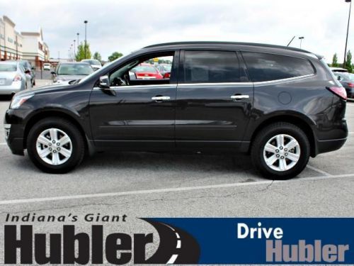 3rd Row Seat, Sunroof, Heated Seats, Power Liftgate, Rear Air, Back-Up Camera, Overhead Airbag, Alloy Wheels. LT trim, Tungsten Metallic exterior and Ebony, Leather Seating Surfaces interior. FUEL EFFICIENT 24 MPG Hwy/17 MPG City! SEE MORE!======KEY FEATURES INCLUDE: Third Row Seat, Quad Bucket Seats, Power Liftgate, Rear Air, Heated Driver Seat, Back-Up Camera, Premium Sound System, Satellite Radio, iPod/MP3 Input, Onboard Communications System, Aluminum Wheels, Remote Engine Start, Dual Zone A/C, Heated Seats. Rear Spoiler, MP3 Player, Rear Seat Audio Controls, Privacy Glass, Keyless Entry. ======OPTION PACKAGES: SUNROOF, DUAL SKYSCAPE 2-PANEL POWER with tilt-sliding front and fixed rear with sunscreen, LPO, 'HIT THE ROAD' PACKAGE includes the following dealer-installed options: (VQM) Chrome assist steps, LPO and (S49) roof rack longitudinal C-channels and cross rails, LPO, TRAILERING EQUIPMENT includes (V08) heavy-duty cooling system and (VR2) trailer hitch, LT PREFERRED EQUIPMENT GROUP Includes Standard Equipment, ENGINE, 3.6L SIDI V6 (281 hp [210 kW] @ 6300 rpm, 266 lb-ft of torque @ 3400 rpm [359.1 N-m]) (STD). LT with Tungsten Metallic exterior and Ebony, Leather Seating Surfaces interior features a V6 Cylinder Engine with 281 HP at 6300 RPM*. ======EXPERTS ARE SAYING: Great Gas Mileage: 24 MPG Hwy. ======WHO WE ARE: After more than 50 years in business, The Hubler Auto Group, through the power of ten central Indiana locations, has literally sold hundreds of thousands of vehicles and is one of the oldest and most prolific auto dealers in the State employing 550 people. The Hubler Auto Group can claim the title for selling more G.M. vehicles in the State of Indiana than any other dealer or dealer group Horsepower calculations based on trim engine configuration. Fuel economy calculations based on original manufacturer data for trim engine configuration. Please confirm the accuracy of the included equipment by calling us prior to purchase. FREE Window Tint OR Unlimited 1 Year CarWash Pass with any vehicle purchase.* Central Indiana's LARGEST Chevy Dealer! We have great finance rates and rebate incentives available on our new vehicle inventory! Call us today for the details at 866-797-3549. Our Internet Customer Care Team is on-hand to take your call! *Some restrictions may apply. See dealer for details.