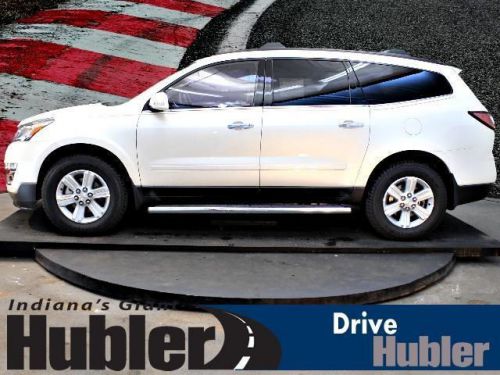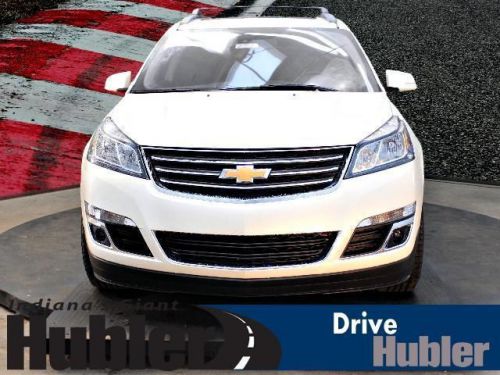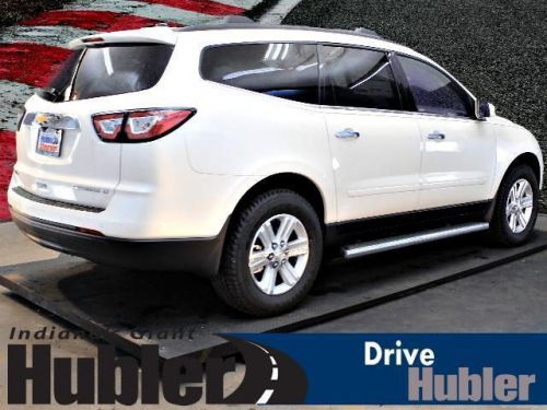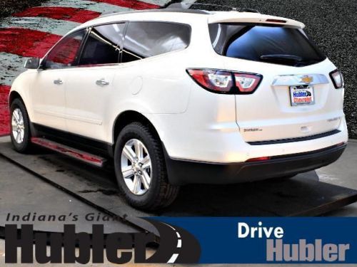 NAV, Sunroof, Heated Seats, 3rd Row Seat, Overhead Airbag, Power Liftgate, Rear Air, Quad Seats. White Diamond Tricoat exterior and Ebony, Leather Seating Surfaces interior, LT trim. FUEL EFFICIENT 24 MPG Hwy/17 MPG City! READ MORE!======KEY FEATURES INCLUDE: Third Row Seat, Quad Bucket Seats, Power Liftgate, Rear Air, Heated Driver Seat, Back-Up Camera, Premium Sound System, Satellite Radio, iPod/MP3 Input, Onboard Communications System, Aluminum Wheels, Remote Engine Start, Dual Zone A/C, Heated Seats Rear Spoiler, MP3 Player, Rear Seat Audio Controls, Privacy Glass, Keyless Entry. ======OPTION PACKAGES: SUNROOF, DUAL SKYSCAPE 2-PANEL POWER with tilt-sliding front and fixed rear with sunscreen, LPO, 'HIT THE ROAD' PACKAGE includes the following dealer-installed options: (VQM) Chrome assist steps, LPO and (S49) roof rack longitudinal C-channels and cross rails, LPO, COLOR TOUCH NAVIGATION SYSTEM, TRAILERING EQUIPMENT includes (V08) heavy-duty cooling system and (VR2) trailer hitch, LT PREFERRED EQUIPMENT GROUP Includes Standard Equipment, ENGINE, 3.6L SIDI V6 (281 hp [210 kW] @ 6300 rpm, 266 lb-ft of torque @ 3400 rpm [359.1 N-m]) (STD). LT with White Diamond Tricoat exterior and Ebony, Leather Seating Surfaces interior features a V6 Cylinder Engine with 281 HP at 6300 RPM*. ======EXPERTS ARE SAYING: Great Gas Mileage: 24 MPG Hwy. ======BUY FROM AN AWARD WINNING DEALER: After more than 50 years in business, The Hubler Auto Group, through the power of ten central Indiana locations Horsepower calculations based on trim engine configuration. Fuel economy calculations based on original manufacturer data for trim engine configuration. Please confirm the accuracy of the included equipment by calling us prior to purchase. FREE Window Tint OR Unlimited 1 Year CarWash Pass with any vehicle purchase.* Central Indiana's LARGEST Chevy Dealer! We have great finance rates and rebate incentives available on our new vehicle inventory! Call us today for the details at 866-797-3549. Our Internet Customer Care Team is on-hand to take your call! *Some restrictions may apply. See dealer for details.