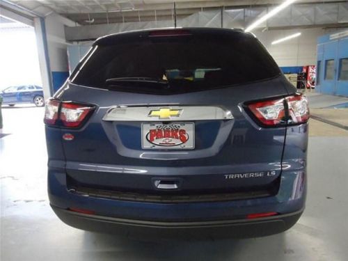 THIS FANTASTIC TRAVERSE HAS A REAR VISION CAMERA SYSTEM *INSIDE REARVIEW MIRROR, AUTO DIMMING *MIRRORS, POWER OUTSIDE, HEATED, MANUAL FOLDING, DIVER SIDE AUTO DIMMING, WITH TURN SIGNALS, AUDIO SYSTEM, COLOR TOUCH AM/FM/SIRIUSXM/HD RADIO with CD PLAYER, 6.5 DIAGONAL TOUCHSCREEN DISPLAY, USB PORT AUX INPUT JACK, AND MUCH MORE!!!!!! INTERNET PRICE DOES NOT INCLUDE DEALER ADDS!!!!! Internet special price includes all applicable rebates. All may not qualify for all incentives. All rebates may not be used in conjunction with the special rate incentives. (Silverado price does include rebate for trading a vehicle that is a 99 or newer model year Chevrolet or GMC truck)! - This 2014 Chevrolet Traverse 4dr FWD 4dr LS SUV features a 3.6l sidi v6 6cyl Gasoline engine. It is equipped with a 6 Speed Automatic transmission. The vehicle is Atlantis Blue Metallic with a Dk Titanium/Lt Titanium interior. It is offered with a full factory warranty. - Air Conditioning, Climate Control, Cruise Control, Tinted Windows, Tachometer, Digital Info Center, Tilt Steering Wheel, Steering Wheel Radio Controls, Passenger Airbag, Side Airbags, Keyless Entry, Security System, Traction Control, Dynamic Stability, Rear Defogger, Intermittent Wipers, 3.6l sidi v6, Reclining front buckets, Insulation, Seat, Seat, Seat, Console, Floormats, Floor covering, Steering wheel, Steering column, Instrumentation, Windows, Door locks, Rear Vision Camera display integrated into Color Touch Radio (Not available with (UUI) Audio System with USB Port on Fleet and Government order types.), Mirror, Cup holders 10 with (ABB) 7-passenger (2-2-3 seating configuration) and 12 with (ABC) 8-passenger (2-3-3 seating configuration), Visors, Lighting, Trim, Cargo storage, dk titanium/lt titanium, Wheels, Tires, Roof rail moldings, Spoiler, Moldings, Headlamps, Headlamp control, Glass, Mirrors, Mirrors, Wipers, Wiper, Door handles, Liftgate, Axle, Battery, GVWR, Suspension, Steering, Brakes, Exhaust, StabiliTrak, Daytim ... Parks Chevy has a longstanding history of making it a pleasant process when buying or servicing your new Chevrolet, offering you guaranteed credit approval and the Triad's best selection... Get the vehicle you want for the payment you need. Minutes from Winston-Salem or Greensboro, Come see why The Little Cheeper Dealer is Worth The Drive!
