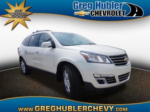 Nav System, Third Row Seat, Moonroof, Entertainment System, Heated Leather Seats, Head Airbag, Quad Bucket Seats, All Wheel Drive. LTZ trim, White Diamond Tricoat exterior and Ebony, Perforated Leather Seating Surfaces interior. CLICK ME!======KEY FEATURES INCLUDE: Leather Seats, Third Row Seat, All Wheel Drive, Quad Bucket Seats, Power Liftgate, Rear Air, Heated Driver Seat, Cooled Driver Seat, Back-Up Camera, Premium Sound System, Satellite Radio, Onboard Communications System, Aluminum Wheels, Remote Engine Start, Dual Zone A/C. Rear Spoiler, Rear Seat Audio Controls, Remote Trunk Release, Privacy Glass, Keyless Entry. ======OPTION PACKAGES: ENTERTAINMENT SYSTEM, REAR SEAT DVD PLAYER WITH REMOTE CONTROL, OVERHEAD DISPLAY 2 sets of 2-channel wireless infrared headphones and auxiliary audio/video input jacks (Includes (UGU) Chevrolet MyLink radio with Rear Seat Entertainment (UGX) Chevrolet MyLink radio with Navigation and Rear Seat Entertainment.), SUNROOF, DUAL SKYSCAPE 2-PANEL POWER with tilt-sliding front and fixed rear with sunscreen, COLOR TOUCH NAVIGATION SYSTEM (Includes (UGY) Chevrolet MyLink radio with Navigation without (U42) rear seat entertainment system.), TRAILERING EQUIPMENT includes (V08) heavy-duty cooling system and (VR2) trailer hitch, LTZ PREFERRED EQUIPMENT GROUP Includes Standard Equipment, ENGINE, 3.6L SIDI V6 (281 hp [210 kW] @ 6300 rpm, 266 lb-ft of torque @ 3400 rpm [359.1 N-m]) ((288 hp [214.7 kW] @ 6300 rpm, 270 lb-ft of torque @ 3400 rpm [364.5 N-m] with dual exhaust).) (STD). LTZ with White Diamond Tricoat exterior and Ebony ======WHO WE ARE: While we make every effort to be sure that we are offering you the lowest price the first time, we are not perfect. If you find a lower advertised price somewhere else, simply print it out and bring it in, we will gladly match it for you. Horsepower calculations based on trim engine configuration. Please confirm the accuracy of the included equipment by calling us prior to purchase.