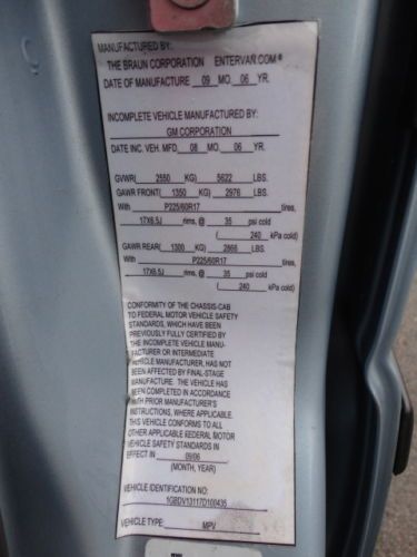 2006 chevrolet uplander cargo mini van 3.5l 116.437mi(US $1,499.00)
