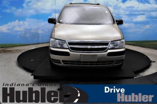 In Good Shape, CARFAX 1-Owner. w/LT 1SD Pkg trim. WAS $4,995, FUEL EFFICIENT 26 MPG Hwy/19 MPG City! 3rd Row Seat, Rear Air, CD Player, Quad Seats, TRANSMISSION, 4-SPEED AUTOMATIC, ELEC..., Alloy Wheels, Serviced here. CLICK NOW!======KEY FEATURES INCLUDE: Third Row Seat, Quad Bucket Seats, Rear Air, CD Player. Power Third Passenger Door, Rear Seat Audio Controls, Aluminum Wheels, Keyless Entry, Privacy Glass. ======OPTION PACKAGES: TRANSMISSION, 4-SPEED AUTOMATIC, ELECTRONICALLY CONTROLLED W/OVERDRIVE. w/LT 1SD Pkg with SANDRIFT METALLIC exterior and NEUTRAL INTERIOR interior features a V6 Cylinder Engine with 185 HP at 5200 RPM*. Serviced here. ======EXPERTS ARE SAYING: 4 Star Driver Front Crash Rating. 5 Star Driver Side Crash Rating. Great Gas Mileage: 26 MPG Hwy. ======AFFORDABILITY: Was $4, 995. ======MORE ABOUT US: After more than 50 years in business, The Hubler Auto Group, through the power of ten central Indiana locations, has literally sold hundreds of thousands of vehicles and is one of the oldest and most prolific auto dealers in the State employing 550 people. The Hubler Auto Group can claim the title for selling more G.M. vehicles in the State of Indiana than any other dealer or dealer group, and has earned the right to brag of having the largest and most loyal customer Pricing analysis performed on 6/5/2014. Horsepower calculations based on trim engine configuration. Fuel economy calculations based on original manufacturer data for trim engine configuration. Please confirm the accuracy of the included equipment by calling us prior to purchase. Did you know that Hubler Auto Center has earned the #2 dealer in Indiana for GM Certified car sales? PLUS...most of our non-GM pre-owned vehicles come with a 2 year / and up to 100,000 miles limited powertrain warranty! We've got you covered with the BEST coverage in Central Indiana - call today for details!