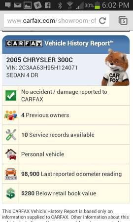 NO RESERVE!! First I will list the customizations: -New burgundy color plasti-dip! It has the "flat" look until the sun hits it... Heavy metal flakes give it a beautiful glitter! Plasti-dip is basically a removable paint job! If you ever want to, you can actually peel it off and it will be the original silver color paint. And then you can do another color if you want! This is the newest craze and you can see it and get more info on it on youtube. -New 22 inch rims and tires. -chrome door pillars and accent stripes **New Chrome grill put in recently. (The first couple pictures are the accurate new grill) -remote start! -light window tint -Heated seats -CD player with aux hook up -interior leather in great condition. Very clean. Nice accent wood grain trim. Mechanically this car runs great! HEMI engine is sooooo strong! There are no warning lights. Never been in an accident. Clean carfax. Clean title in my name in hand. Recently passed NJ inspection and is good until 2015! On Apr-13-14 at 08:56:28 PDT, seller added the following information: **PLEASE LOOK AT LAST 5 PICTURES!!! I made a change... People were requesting for me to remove some of the plasti-dip, so I did. I hope you like the new design! On Apr-13-14 at 09:19:33 PDT, seller added the following information: . |