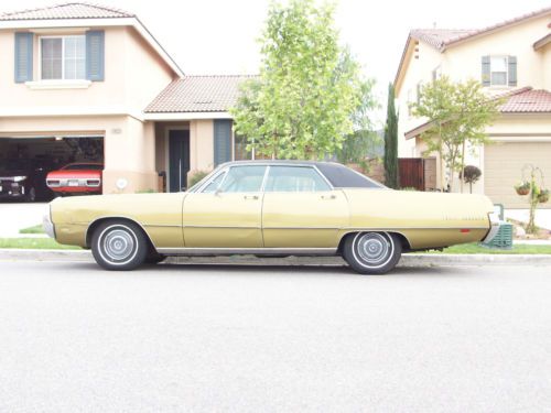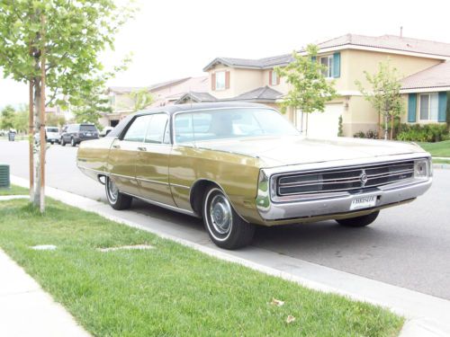 I have a 1969 Chrysler 300 4-Door. It is in very nice shape and an original California car. Spent most of its life in Santa Ana. It has the 350HP 440 With 4 Barrel. Original A/C car and everything is there. The A/C however does not blow cold. The car runs like a top and I have no problem taking it anywhere. The 440 is fast and very responsive and easily make upgrades its bitch. It has had a repaint done at some point, not fantastic, but shows pretty well. I would say the interior was redone as well. The vinyl top needs to be re-done and there is a bit of rust at bottom of rear window. The frame is rust free. This is a great cruiser vehicle, fun to take the family out in and rides smooth like a luxury vehicle should. All lights and blinkers work. Headlight doors operate perfectly. Gas gauge as with most old mopars does not work, but this car has a trip meter which makes it fairly easy to determine how much gas you have. The tires are newer and in excellent condition. There are no parts missing except the front fender reflectors. They are easily found on ebay for cheap, just never got around to it. Also A-Pillar drivers side plastic piece is missing in action. This car would be great to drive as it sits, throw a few more bucks at it and make it show quality, or if the need is there, you could pull the entire drivetrain and put it in that rarer 1969 B-Body or Coupe. I will sell this car to anyone in the world. Buyer is responsible for all fees and arrangements for shipping. I will be happy to assist where needed. I have shipped quite a few cars overseas. Be prepared to have transport company come to my front door. I am not driving the vehicle to some other location. This is listed as a best offer listing. If you are going to make an offer, be prepared to follow through if I accept it. I am not playing games here, serious buyers only, lookie-lous......keep clicking, nothing to see here.
