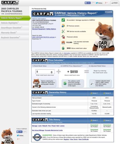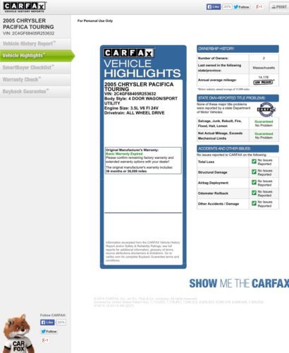 2005 Chrysler Pacifica Touring No Reserve Auction!! Up for bids is our 05 Pacifica with 135,xxx miles, automatic all wheel drive. Miles may vary since it's register and driven daily. It runs and drives good. We are the 2nd owners and just don't need something this big anymore. No check engine or any service lights on. Good tires, oil change and front brakes just done this May. Also spark plugs, alternator and battery replaced about five months ago. Always service as required. It does needs front shocks was told at last service. Interior is good, only normal wear mostly on the driver seat. Everything electrical works as it should, power locks, power windows, sun roof, heated seats, heater and a/c, cd radio etc.. The body looks good except for that one rust spot on the rear left quarter and normal small scratches and dings. The Mopar bike racks are included as well. Clean MA title on hand. Clean Carfax. Please see all actual pictures. Any questions please ask before placing a bid, I will do my best to answer. If your local feel free to come and check it out, just contact me. Selling as is, where is, without any kind of warranty. Buyer is responsible for pick up of the vehicle, delivery arrangement and/or towing transport fees. A Paypal deposit of $500 is required within 24 hours of the end of auction. The remaining balance is due at or before pickup, either cash or certified cashier check. Transaction should be completed within 10 days of the end of auction. Vehicle or title will not be released until all payments have cleared. Thank you and Happy Biding! |