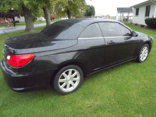 Up for sale is a 2009 Chrysler Sebring Convertible. It is the Touring edition with the hard top convertible option. The car has 102,XXX miles on it, (may go up due to for sale locally). There are a few dents on the car.(Driver door big dent) (trunk lid dent) Minor other dents around car. The interior is black leather with dual heated seats. There is a small tear in the back seat.(see picture) Crack on the relaese handles for the seats.(see picture) The tires are very good on it. The tire pressure light is on due to the pass rear wheel valve stem sensor broke.(replacement part included but not installed) Crack in the windshield also. This Sebring is a fantastic car and with a little cosmetic work can be a great bargain!! Feel free to ask any questions you may have.