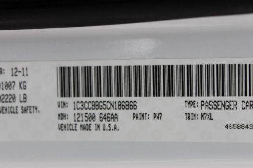 VIN (Vehicle Identification Number): 1C3CCBBG5CN186866