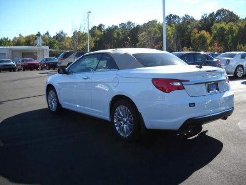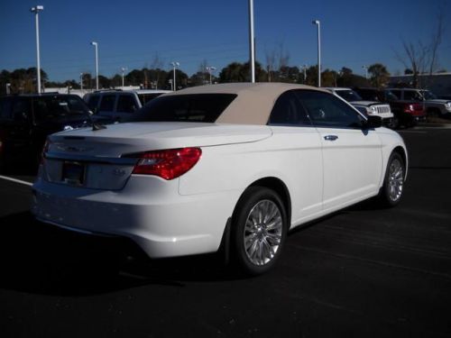 Heated Leather Seats, Remote Engine Start, CD Player, Flex Fuel, Aluminum Wheels, Heated Mirrors, Bluetooth, iPod/MP3 Input, Satellite Radio. FUEL EFFICIENT 29 MPG Hwy/19 MPG City! Limited trim. CLICK ME!KEY FEATURES INCLUDEHeated Leather Seats, Heated Mirrors, Flex Fuel, Satellite Radio, iPod/MP3 Input, Bluetooth, CD Player, Aluminum Wheels, Remote Engine Start MP3 Player, Keyless Entry, Remote Trunk Release, Steering Wheel Controls, Electronic Stability Control. EXPERTS ARE SAYINGGreat Gas Mileage: 29 MPG Hwy. MORE ABOUT USRick Hendrick Jeep Chrysler Dodge is the premier dealership for New and Used Jeep, Chrysler & Dodge vehicles in Charleston, South Carolina and specializing in Jeep, Chrysler & Dodge Sales, Finance, Service, and Parts. At Rick Hendrick Jeep Chrysler Dodge, our customers are being provided with high quality service and excellent after sales support. Closing Fee is included in the advertised/sales price. Fuel economy calculations based on original manufacturer data for trim engine configuration. Please confirm the accuracy of the included equipment by calling us prior to purchase. - This 2014 Chrysler 200 2dr 2dr Conv Limited Convertible features a Engine: 3.6L V6 24V VVT 6cyl Flex Fuel engine. It is equipped with a 6 Speed Automatic transmission. The vehicle is BRIGHT WHITE with a Other Leather interior. It is offered with a full factory warranty. - Air Conditioning, Climate Control, Cruise Control, Power Steering, Power Windows, Power Door Locks, Power Passenger Seat, Digital Info Center, Steering Wheel Radio Controls, Passenger Airbag, Side Airbags, Keyless Entry, Security System, ABS Brakes, Dynamic Stability, Rear Defogger, Fog Lights, Intermittent Wipers, AM/FM, CD Player, Leather Interior Surface, Heated Driver Seat, Heated Mirrors, Flex Fuel, Satellite Radio, iPod/MP3 Input, Bluetooth, Remote Engine Start, MP3 Player, Remote Trunk Release, Bucket Seats, Electrochromic rearview mirror, Brake Assist, 4-Wheel Disc Brakes, Tire Pressur ... Be sure to utilize our great team of Internet Sales Managers whether you are browsing online or decide to come see our Charleston car dealership for yourself!