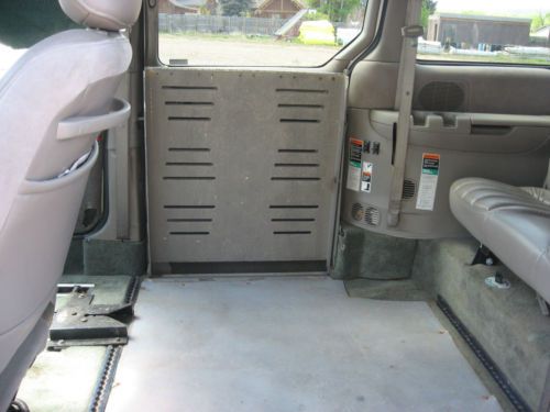 The photos tell all. One photo shows the handicapped conversions done in Florida. The entire floor was lowered 10 inches and it has "kneel"which lowers the entire vehicle in order to ease a wheel chair up a ramp into the space normally used for the middle seats. The passenger side front seat is gone. The drivers seat is removable (to accommodate someone's wheel chair. It does not have hand controls for applying brakes but they could be added. The EZ lock system could be moved over to the driver area. This is mentioned because the vehicle set up for a handicapped passenger but is adjustable for a handcapped driver. There are ramp switch locations in the front and the back. There are buzzers to insure the chair lock down and for backing up. There are two sliding doors for easy access. The upholstery is in excellent shape. There is a charger system under the rear seat for charging a wheel chair. An AC mod puts AC in the rear (heater also). The remote just locks the doors and does not lower the ramp. (This would be important for a handicapped driver). With the exception of a crack in the running board (photo) the paint is in excellent shape. One photo shows the front hood. The van has heavy duty suspension, oil cooler (tranny), a heavy duty radiator and wiring harness for a trailer tow. The roof rack is in excellent shape. I stood on the ramp to show its strength, at least at 200 + lbs. New this vehicle was over $50K. We are going to ask $10K and no auction. Make an offer. I think this is the only ramp van in the the Western US. I am ready to deliver if necessary. I can't do it for free so make an offer for that also. |