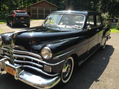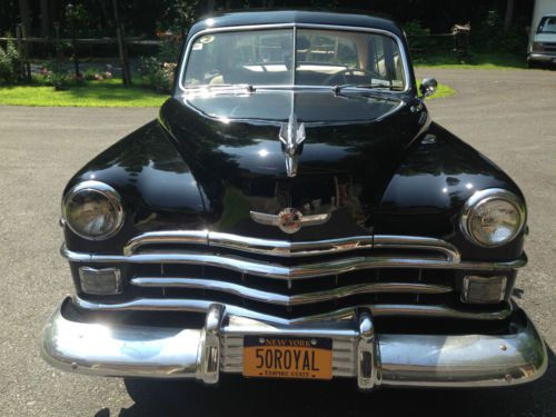 For sale is a 1950 Chrysler Royal all original. The first $6,900. Takes this beauty What a great running and driving automobile with new tires, complete new brake system, new master cylinder and exhaust. The flat head 6 cylinder runs great and the transmission shifts very smooth to make this cool old car a real pleasure to drive. Everywhere you go it draws attention ! The black paint job shows just how nice and straight the original sheet metal is. This is a great driver, NOT A SHOW CAR. Being sold as is where is with no warranty BUYER IS RESPONSIBLE FOR SHIPPING OR PICK UP Don't be mistaken this is one beautiful automobile that runs, drives and looks like you wouldn't believe! Buy with confidence, You will be very pleased with the result. ONLY $6,900. |