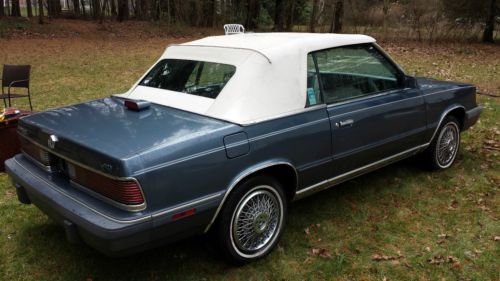 You are looking at an all original 1986 Chrysler LeBaron Convertible with the rare Mark Cross Edition interior. We bought this at an estate auction from the original owner. This is a one owner car for 27 years! This car could be the lowest mileage LeBaron out there. This was the top of the line with all of the bells and whistles including digital dash, and was very expensive for its time. Everything in the interior/exterior works and the A/C blows cold. As of today, it has a brand new battery. It has the very desirable non-turbo 2.2 liter 4 cylinder, which is just getting broken in. This car will pass inspection with no issues and I wouldn't hesitate driving it anywhere. It is ready to go. Just take a look at the picture of the clean engine. It is ready for car shows, the beach, parades, etc. It runs and drives perfect! It is as close to new as you can get. There are no dents or rust on this car. And the top and all chrome is in excellent condition. As you can see in the pictures, this car is in near excellent condition. It was obviously garaged and very well maintained. There are only minor imperfections that would expected with a 28 year old car. The only imperfections include: The switch for moving the drivers seat backwards is sporadic, but all other power seat functions work perfectly, 2 missing center caps, passenger side front hubcap/tire has curb rash, pin striping could use a refresh (cheap $6 at auto store), the passenger side rear small window is off the track and just needs to be manually put up and down, rear pistons in the trunk are weak and has a stick holding up trunk lid. Interior is near mint with only some very minor imperfections (pictures.) As you can see these are extremely minor, inexpensive and easy fixes that can be done (nearly all cosmetic). I am being extremely detailed and honest with the minor needs. Most people probably wouldn't list most of these. All of the parts are easily accessible. I have the owner's manual and previous title. Bid with confidence. Finish the easy restoration, o drive immediately as is. It is cheap to register due to antique status. You won't be disappointed. Check my feedback. Good luck!