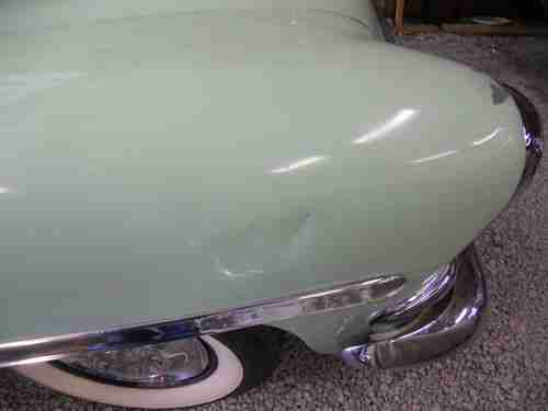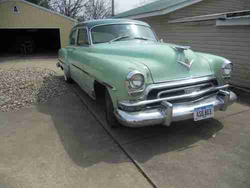 1954 Chrysler New Yorker Deluxe 4 door sedan. 331 hemi V-8 engine runs excellent. Some paint damage on front fender. Front drive seat is worn. Interior is otherwise excellent. Leather dash is excellent. Good chrome. Straight, solid body. Power brake booster does not work. This car has been in storage for over 30 years.
