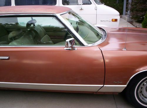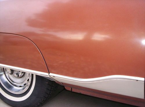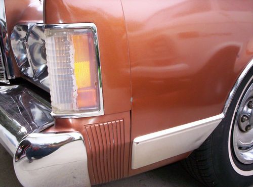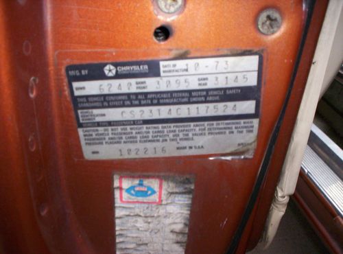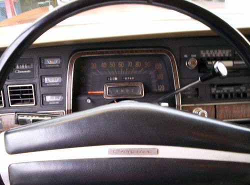 1974 New Yorker Brougham 2DRHT Survivor, was my dad's car, he bought it from the original owner here in the Reno/Sparks area. Has just over 78K miles, with original factory paint, code T5 Sienna Metallic, was going to install a new vinyl top before selling, but on a friends advice decided to leave it up to the new owner, as far as color choice etc. The factory top color was V1L which is Parchment or Beige. Also, by leaving the top off, you can see that besides a very thin surface rust, there is no major or minor rust on the roof or anywhere else. The 440 runs really nice, quiet, smooth and powerful. The 727 shifts perfect. I recently installed new front brake hoses and new semi-metallic brake pads, along with a new master cylinder, bled entire brake system, and installed a new idler arm. The front end still needs a little work, not sure what else it needs, maybe new strut rod bushings and sway bar bushings. It brakes extremely well with the new S/Met pads though. The interior needs some upholstery work on the driver's side seat, but the rest of the seats are just beautiful and still soft, even the top of the rear seat backs are still soft! One power window does not work, the passenger rear quarter window. The driver's window jiggles a bit when lowered, the window guide post needs to be lubricated. The top of the dash pad discolored after i cleaned it, but it can be re-dyed as it's still pretty soft. The driver's door arm rest has a cover on it that my dad installed to cover a crack i believe. My dad recharged the A/C, but it lost the charge over time. The cruise control works. It is a very loaded car, with Power Windows, A/C, Cruise, Tilt/Tele, Power Trunk Release, Rear Window Defogger, Light package, 6 Way Power Driver's seat, Power door locks, AM/FM 8-Track Stereo, LED Warning lights, ( one of the first Detroit cars to have them along with the gauges), Chrome Styled Road Wheels, etc. I have the build sheet and the original owner's manual. I polished the paint with Meguiar's products by hand, but i think that with a buffer, the paint will look spectacular for original factory paint from 1974. This car is coded on the build sheet as having "show car finish". There are a couple of very small dents, they are in close up pics. The chrome is still very nice, and still original. I hate to sell this car, but i already have too much to do and can't spend the time it so much deserve's. If you have any questions or want more pictures, please message me through ebay, and i'll send them to your e-mail. As with any vintage car, especially a survivor like this one, it's not perfect and will need some restoration work, but not nearly as much as most. Of course, it is sold as-is. Thanks for looking.