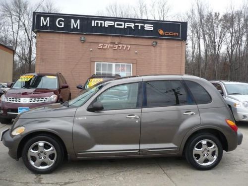***WWW.MGMIMPORTS.COM*** 2001 Chrysler PT Cruiser Limited, IMMACULATE IN/OUT, AUTOMATIC, 2.4L 4 CYLINDER ENGINE, ONLY 79K MILES, 20/26 MPG, FULLY LOADED, LEATHER INTERIOR, SUNROOF, HEATED SEATS, CD/TAPE PLAYER, ABS, ALLOY WHEELS, TILT WHEEL, CRUISE CONTROL, TRACTION CONTROL, REAR WIPER, REAR DEFROST, KEYLESS ENTRY, ALARM, NICEST ONE IN TOWN -- MOST OF OUR VEHICLES ARE HIGH QUALITY, HAND PICKED, ONE OWNER IN A LIKE NEW CONDITION WITH A CLEAN CAR FAX. ALL ARE FULLY INSPECTED, SERVICED AND RECONDITIONED, THOSE THAT DO NOT MEET OUR MECHANICAL CRITERIA ARE NOT OFFERED FOR SALE. MOST OF OUR VEHICLES ARE COVERED WITH THE MANUFACTURER WARRANTY OR A 3 MONTHS/4500 MILE WARRANTY. FINANCING IS AVAILABLE AND TRADES ARE ALWAYS WELCOMED. FOR SIMILAR GREAT DEALS PLEASE VISIT OUR WEBSITE http://www.mgmimports.com Thanks so much for checking out MGM Imports in your car hunt! We're proud to sell the very best used car stock in the Cincinnati area. Our welcoming, very low-hassle attitude continues to be the number one appeal of our company. We carry all luxury used cars, imports, and high end cars on our lot. No matter where in Cincinnati you are MGM Imports has the best used car inventory for you.