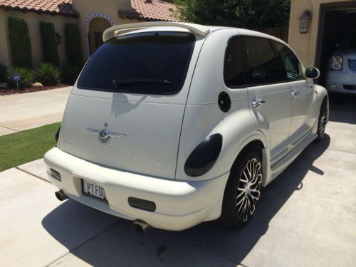 This is a rare 2004 PT Crusier. Alot of time and money was put in this car. It is a great car and fun to drive. It turns heads everywhere it goes. All services have always been done. You can see it all on the Carfax. Starting with the outside of the car.... -Full Xenon Body Kit (not a cheap one) -Full Front Grill -Custom 18in Rims and Tires (1000 miles on them) -Painted outside mirrors -Custom smoke Tail lights and Reverse Lights -Custom Gas Door -Rear Spolier -Dual Exchaust INSIDE OF CAR..... -Pioneer Indash Flip Out with Ipod,Aux,XM, and CD Changer all Touch Screen -2 Performance Technique Amps one on Subwoofers and one on Highs - Power Cap (to help no drain battery) -Custom Box with 2 12in Almani Subwoofers -2 7in Headrest Screens -Bluetooth -Custom Alarm with Remote Start and will also lock doors and roll up front windows if down. -Billet Flame Pedals and Rearview Mirror