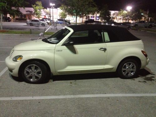 Up for bids!!! Is a beautiful 2005 Limited- edition White Chrysler PT cruiser This car is beautiful And runs excellent!!! The paint on this car is a beautiful white color And is in excellent condition!!! The car has beautiful chrome rims that are very shiny and look real nice!!!The Convertible top is black and is also electronic!!! The top is in excellent condition and goes up and down very smoothly!!! The interior is black and also has silver accents on the dashboard which is beautifully designed!! The interior is very comfortable and has two armrest that come down For a real comfortable drive in the driver and passenger seats!!!!the back is very comfortable and spacious!!!! This car has a great amount of room on the inside!!! It is a very beautiful car that drives great and has no problems!!! The AC works great and is very cold!!!This car has always been cared for and maintained!!! Driving with the convertible down is also very fun!!! Come driveaway in a beautiful, nice limited-edition Chrysler PT cruiser that is a very very beautiful and gets a lot of complements!!! You will love this car!!!