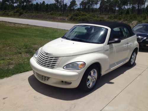 Up for bids!!! Is a beautiful 2005 Limited- edition White Chrysler PT cruiser This car is beautiful And runs excellent!!! The paint on this car is a beautiful white color And is in excellent condition!!! The car has beautiful chrome rims that are very shiny and look real nice!!!The Convertible top is black and is also electronic!!! The top is in excellent condition and goes up and down very smoothly!!! The interior is black and also has silver accents on the dashboard which is beautifully designed!! The interior is very comfortable and has two armrest that come down For a real comfortable drive in the driver and passenger seats!!!!the back is very comfortable and spacious!!!! This car has a great amount of room on the inside!!! It is a very beautiful car that drives great and has no problems!!! The AC works great and is very cold!!!This car has always been cared for and maintained!!! Driving with the convertible down is also very fun!!! Come driveaway in a beautiful, nice limited-edition Chrysler PT cruiser that is a very very beautiful and gets a lot of complements!!! You will love this car!!!