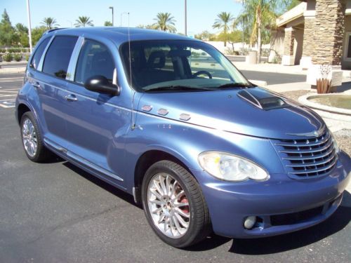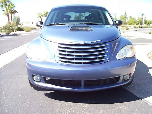 *** NO RESERVE*** YOU ARE BIDDING ON A 2006 GT TURBO GT CRUISER. CUSTOM LOOK WITH NON FUNCTIONING HOOD SCOOP, HOOD SIDE VENTS, SPOILER, PIN STRIPES AND TINTED GLASS. THE CHROME PILLARS, CHROME GAS CAP, AND CHROME GRILL REALLY SET OFF THIS UNIQUE LOOKING CRUISER. THE 5 SPEED TRANSMISSION SHIFTS SMOOTHLY WHILE GIVING ECONOMY (20 / 27 MPG) AND QUICK RESPONSE WITH A 230 HORSEPOWER TURBO PLANT. ICE COLD A.C., LEATHER INTERIOR, ELECTRIC MOON ROOF, POWER - SEAT, WINDOWS, LOCKS, CRUISE, CHILD PROOF REAR DOORS, AM/FM/CD PLAYER AND CHRYSLER UPGRADED CHROME SPOKE WHEELS, FOLDING REAR SEATS, ALL ADD UP TO MAKING THIS A VERSATAILE SPORTY VEHICLE. THE PAINT IS NICE AND SHINY, WITH NO DINGS OR DENTS, BUT HAS A FEW SMALL SCRATCHES ON THE BUMPERS. CLEAN IN AND OUT !!! 153K MILES. NEEDS NOTHING. ARIZONA CAR DRIVEN BY NON-SMOKING SENIOR. ONLY REASON FOR SELLING- WIFE NEEDS KNEE REPLACEMENT - CAN NO LONGER DRIVE STICK. SHE SAYS ITS GOTTA GO ! *** NO RESERVE HIGHEST BIDDER WINS IT. NO WORRIES - CAN DRIVE HOME CROSS COUNTRY, OR SHIP AT DRIVER'S EXPENSE. WILL HELP YOU GET A GOOD SHIPPER. BID WITH CONFIDENCE!!!