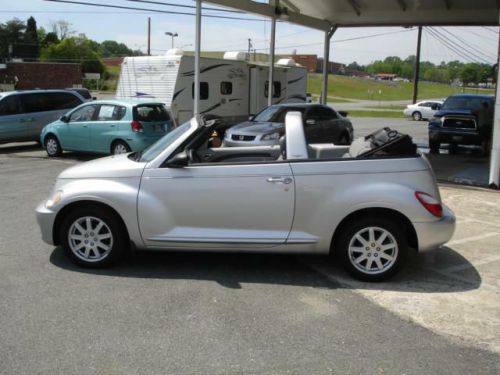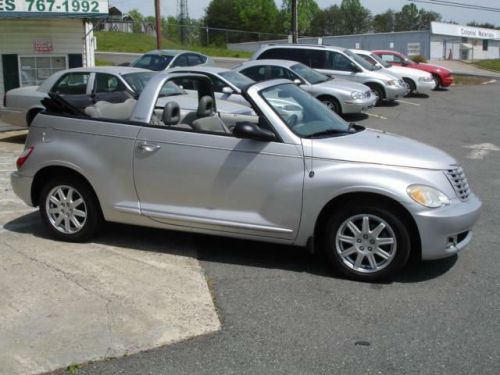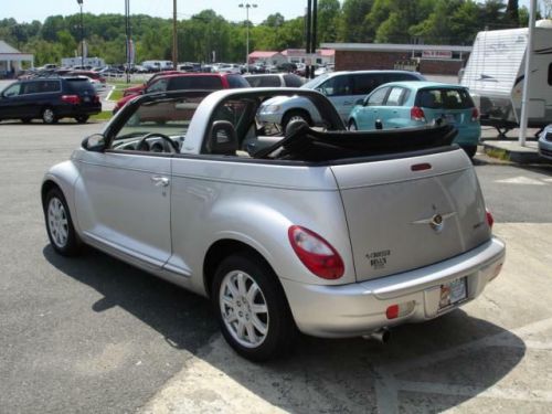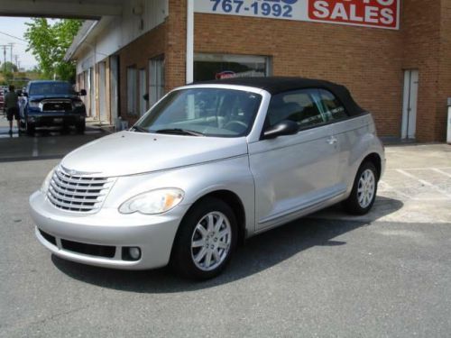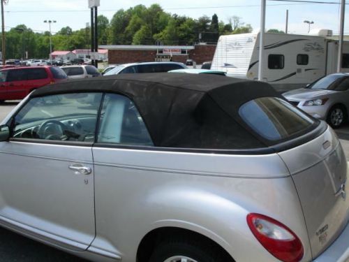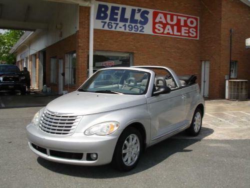 LOCAL NEW CAR TRADE IN WITH CLEAN CARFAX, Our Chrysler PT Cruiser combines the retro look of late-'30s American iron with modern performance, efficiency and features. The look is chopped-top gangster-mobile with the top up, and it puts the wind in your hair with the top down. This cruiser pulls its exterior styling themes into the cabin, although here, too, the retro theme is tempered a bit by a very modern-looking center stack that visually splits the vintage-styled dashboard. Cloth seats, AM/FM stereo, CD player, power soft top and fog lamps are here too! The 2.4L engine is rated 150 horsepower and 165 pound-feet of torque, enough to propel the Cruiser from 0 to 60 mph in about 8.5 seconds and down the quarter-mile drag strip in about 16.7 seconds. We call that peppy. This convertible offers genuine open-air fun. Spring is almost here...Print this page and call us Now... We Know You Will Enjoy Your Test Drive Towards Ownership! Ask for Stacy Bell!! Bells' Auto Sales has been selling cars in Winston-Salem for over 20 years. With more than 25 years of experience under our roof, we are THE place to find your next vehicle. Great Cars, Great People. That's Bell's Auto Sales. We are open M-F: 9-5, Sat: By Appointment.