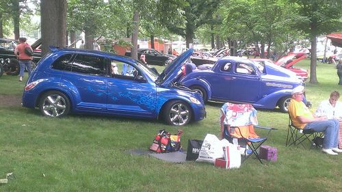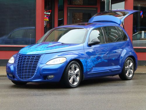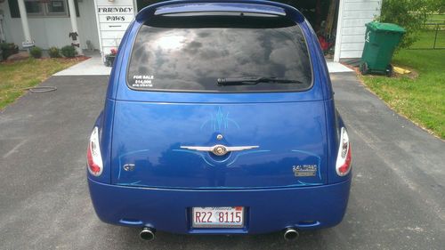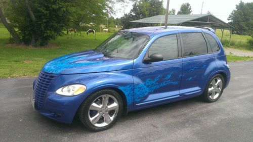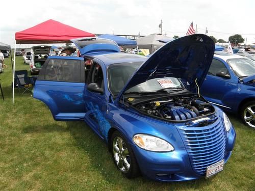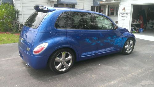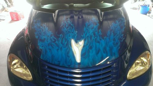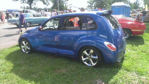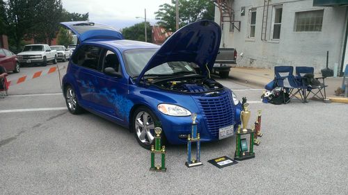 2004 PT Turbo with 31k miles. Full PTeaser Body kit with Hood. Full dis-assembly of the whole car interior and all. Install the body kit, new paint and shave the door handles, autoloc 85 pounds door popper on all 4 doors. The flames are airbrushed and none nicer anywhere. That was 7k for the flames another 3k for the blue base paint and door handles. Just last month I won best paint out of 176 cars. If you show cars you know that isn't easy, there are always stunning cars at shows. The sound system has been upgraded with Kenwood speakers.