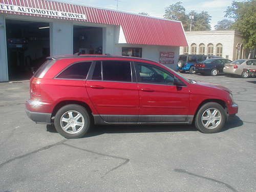 UP FOR SALE IS A 2004 CHRYSLER PACIFICA RUNS AND DRIVES GREAT BODY IS BEATUP REAR HATCH WONT OPEN WINDSHEILD IS CRACKED BADLY CHECK ENGINE LIGHT IS ON DOOR AJAR LIGHT IS ALWAYS ON PARKING BRAKE IS INOP OTHER THAN THOSE ISSUES IT IS MECHANLY SOUND CAR WISCONSIN RESIDENT MUST PAY TAX AND TITLE NO OTHER FEES CAR CAN BE SHIPPED TO THE LOWER 48 STATES FOR ABOUT $0.85 - 2.00 ONE WAY IF YOU HAVE ANY QUESTION PLEASE ASK BEFORE YOU BID 1-608-965-3367 JASEN OR CARL THANKS FOR LOOKING