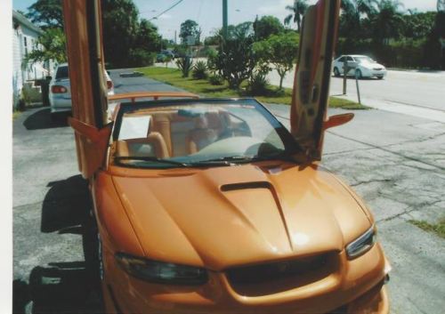1997 Chrysler Sebring Custom Transformer Convertible Professionally custom built from the ground up Custom Leather Interior Custom Gauges AM-FM Stereo w/Cassette & CD Tilt Steering Wheel Cruise Control Carbon Fiber Pedals Ice Cold Air Conditioning Power Windows and Locks Power Seat Intermittent Wipers Rear Window Defroster Dual Air Bags 5 inch TV Screen for dash Custom Padded Dash Rear Spoiler Ground Affects Hood Scoop Special Orange Tinted Windows Brand new convertible power top with glass window Awesome Stereo System w/MGC Audio System in trunk Trunk wired for a 24 inch flat screen TV Rebuilt motor and automatic transmission 4200 miles on the motor and transmission New Exhaust System New brake system with air cooled rotors 17" Chrome wheels with new low profile tires Custom Hydraulic Gullwing Doors $27000 Spent on customizing this beautiful convertible A credited show car for the discriminating collector Any questions, feel free to call me at 561-315-5049 |