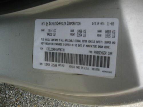 2002 chrysler sebring, no reserve