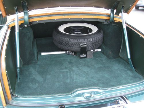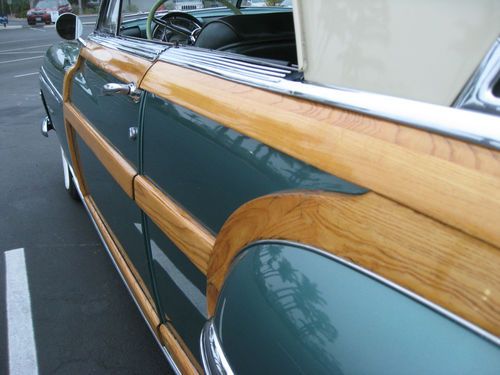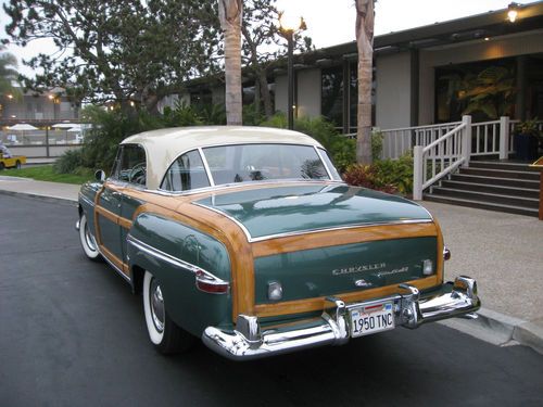 1950 Chrysler Town & Country Newport woodie; one of 75 remaining of the 700 originally made. This woodie has just over 38,000 original miles on the odometer. The car was purchased by our family in 2002 as a driver and since then has undergone a sympathetic restoration, taking care to preserve as much of the original design and patina as possible. Extensive restoration has taken place "out of sight" to achieve this result. Changes have only been made to enhance the car's drivability on modern roads while keeping its soul intact. This car could be driven from coast to coast, on Route 66, entered in popular rallies or car shows, reside in a museum, or simply driven and enjoyed. It's a happy car. Virtually every time I've driven the car it has received a "thumbs up" from others who enjoy looking at it. It is also a strikingly beautiful car. Highlights of major work include installation of vacuum assisted front disc brakes, new carpeting, new Juniper Green paint, new chrome, and rebuilt fluid drive and gearbox. Additionally, the car has never been in an accident and has no dings.