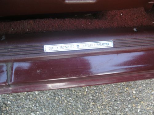 Hi Everyone, You are looking at a Classic 1987 Chrysler Town & Country Woody Wagon with 42,910 original miles. This car was always garage kept and is in very good condition for its age. The car has the following features. • Power Steering • Power Windows • AC • Leather Seating • Digital Dash • Cruise Control • Sliding Rear Cargo Cover • Power seats • AM FM Radio • New Battery • Cigarette Lighter and ash tray – never smoked in • Gas tank replaced about 4 years ago • New rear shocks – air shocks removed by mechanic. • Roof rack • Power drivers seat • Rear defogger • Full size spare • Nice clean running 4 cylinder engine This is a very good running car for its age. If you live nearby and want to see the vehicle please let me know. This car was recently inspected in PA and I believe it qualifies for antique or classic plates. I will assist potential buyer in ship cost, but please understand the fees associated with shipping and notary are the responsibility of the buyer. Good luck and ask questions as I did my best to describe the vehicle.