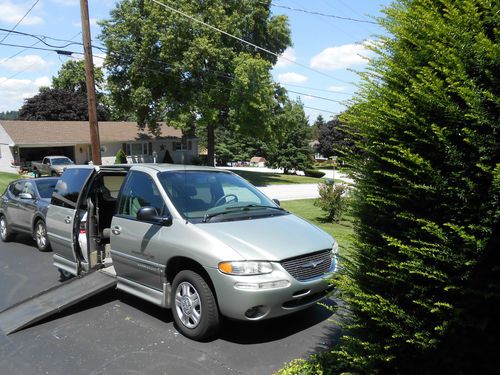 1999 Chrysler Town and Country LX Handicap Accessible Van with 110K miles. New tires and new Air Conditioner compressor. New Inspection. Van has a "kneeler" that lowers the passenger side of the van when the automatic ramp is deployed. Garage kept and never smoked in. Very good condition for age. Tear in upholstery on driver's side chair (see picture). Selling for my Uncle who is the original owner but no longer needs the van.