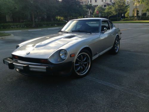 to the car: This is a fun classic car you can hop in and go anywhere. Engine, transmission, exhaust: Original L28E 2.8 with 5 speed Transmission -chrome valve cover from Arizona Z cars -new Taylor spark plug wires (blue) -Aluminum radiator from MSA -Billet aluminum radiator cap -Billet aluminum battery tie down -Cusco strut bar -Cusco Oil Catch Can -Ceramic coated headers from MSA -K&N Cold Air Intake -New Optima Red top battery -New wiper motor and Rainx Blades -New mass air flow sensor -New Thermostat -New engine compartment light - 2.5 inch Custom exhaust, straight header back, to a new magnaflow muffler -New Stoptech cryo brake slotted rotors -Stainless Steel braided lines -New thermaquiet brake pads Suspension: -New KYB shocks in front -New Monroe shocks in rear -New Eibach spring set intalled ( dropped 2in.) -New front and rear sway bar from MSA Wheels and Tires: -New Hankook 225/50/17rear -New 205/50/17 front , less than 300 miles on new tires -New 17in. Rota RB Hyper Black Wheels -17x8.5 front, 17x9.5 rear, staggered look. Interior - Dash vents work, Map Light, Hazards, everything except the ac and rear defrost is funtional - 3 spoke Grant Steering Wheel with Z-logo horn button -New boot cover - New Dome light assembly with LED light -New door jamb light switch - New rear hatch struts - Z logo rear carpet from MSA -New armrest console with cupholders -New Pioneer Radio with bluetooth and handsfree calling, -New speakers and speaker box in hatch -New Power antenna from Black Dragon -Exterior -Front spoiler from MSA - Chrome mirrors -New headlights with xenon bulbs -New heavy duty headlight wiring harness -New chrome door handles -New turn signal lenses -New side marker lenses -LED side marker lights both front and rear -All emblems in place and seem to be period correct -All interior trim is in place, original, and in excellent condition considering its age Miscellaneous: Small bubbling on paint on cowl tray , and driver lower rear quarter panel -Rear hatch panel has some rust on the corners, very typical in Z's. ***I have a brand new repair patch panel from MSA for the rear hatch that will be included in the sale. - dash cap is warped but I also have a brand new full dash cap in the box that will go with the car - all interior lights and gauges work except for the clock -Clean Florida title under my name - horn, turn signals , hazard lights fully functional, except I disconnected the horn but it is fully functional. - factory a/c car but ac does not work. - windows roll up and down smoothly but have scratches on it - car shifts smoothly, have taken it on highways for hours with no over heating or any issues -tiny oil leak due to rear main seal -all stock components are there -Interior trim pieces are there, nothing is missing but a few need some attention, door handle cuffs are loose -some new seat covers and a new paint job would do this car justice -Carpet is not brand new but is in good shape Overall,