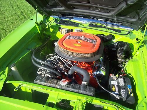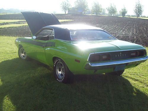 You are bidding on a 1974 Dodge Challenger. It has a BIG BLOCK 440 w/ 4 bbl. carb, auto trans w/ slapstick shifter on floor, and an 8 3/4 rearend. The sassy grass green paint shines like new. Very nice interior with just a couple of small rips in the rear seatback. It has power steering and power brakes and all the lights, turn signals and gauges work just fine. The motor starts and runs great with TONS of power and the transmission shifts great. The vinyl top is in great shape. This is an awesome looking driver quality car that is very fun to drive and take to the local shows but needs a few minor things. It needs a passenger side door mirror, the radio needs to be hooked up and needs an antenna, etc.... just small things. NOTE: The six pack air cleaner does NOT go with. The car will come with a round chrome air cleaner. "BUY IT NOW" FOR $16,000 and I will deliver 100 miles for free. $1000.00 down payment due withing three days after end of auction.