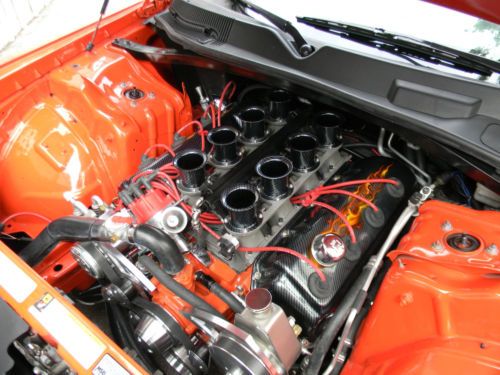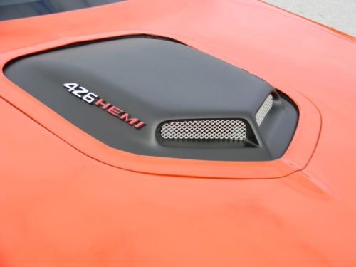This 2009 Dodge Challenger SRT 8 has been converted to the #001 Mr. Norm 426 Hemi Cuda King Cuda Edition. It is the only one that has ever been built. It is believed to be the very first & only Classic 426 Hemi engine that has been put into a new Dodge Challenger. This model has a Mr. Norm Cuda grill and the real Mr. Norm 71 cuda taillights, the rear panel uses actual 71 cuda lens and bezels. Matte black 1971 hemi billboards & shaker hood were added to complete that retro cuda look. This car uses the stock 2009 SRT front and rear suspension, the front cradle was modified to accept the classic 426 hemi. This one drives just like a new SRT but has a real 426 hemi engine it. It has big Brembo brake system from the SRT Challenger. The 426 hemi engine has been rebuilt using forged 10.5 to 1 pistons, a real hemi crankshaft and hemi rods, it is a fresh motor with only test miles on it. The car uses a 4L80 automatic transmission, Classic Hilborn Injection converted to EFI by Bob Ream of Imagine Injection was used, it has a FAST computer system to control the electronic fuel injection, and a March Performance serpentine belt system. It sounds as good as it looks. The interior is basically stock SRT with Autometer Gauges added, Ididit tilt steering column, and a Grant Steering wheel. We used the stock A/C system and added a Kenwood stereo system. This car has all of the power comforts you would expect from a newer car. It has a rollbar in the car if you decide you would like to try to take it to the track. The idea was a create a unique vehicle concept that combined the best of both worlds, the styling of yesteryear with the best today has to offer. Mr. Norm has been know for over 50 years of performance proven knowhow. This model continues that legacy, this is someone's chance to own a piece of automotive history. We have no plans to build another. This one will remain one of one. |