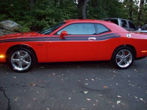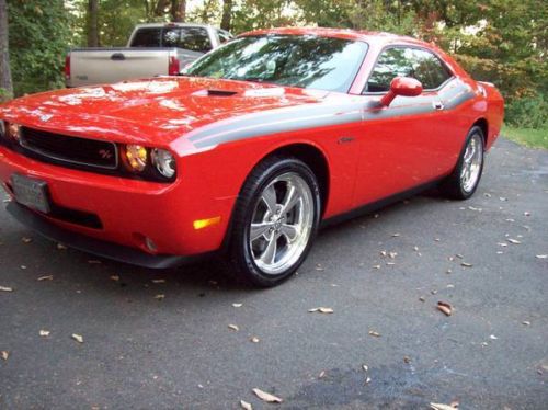 EXTRA Low Mileage (3,200), 2010 Dodge Challenger R/T 2 door coupe, 5.7-Liter V8 HEMI , Orange Pearl Coat paint, Black Leather Bucket Seats, 6 speed manual Transmission. This car is garage kept and is in excellent condition. Never has been driven in the rain. Some of the features are: Power Windows, Drivers Seat, Locks and Cruise, Air Conditioning, AM/FM/ Sirius Satellite/ CD/DVD w/ Premium Boston Acoustic Sound/Radio, Power Sun Roof, Navigation System, High Intensity Discharge Headlamps, Daytime Running Headlamps, 20" performance tires with Chrome Wheels, 4 Wheel Anti-lock Performance Disc Brakes, All Speed Traction Control, Rear Spoiler, Keyless Entry/Start, Sequential brake lights that really look cool... If you would like to see a couple videos of the tail lights and hear it running, send me a message and I will send them to you