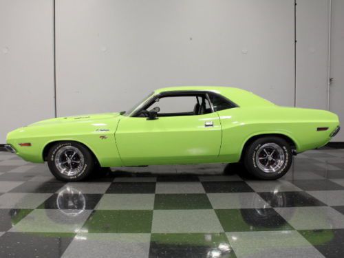 Who doesn't like a Sublime Green E-body? Nobody we know, that's for sure. It's an awesome color that accentuates every line on the Challenger's body. It's bright and loud and fun, and the car's builder really let it be the star. There's a Rallye hood instead of a Shaker, no decals, and no black tape stripes anywhere. A simple set of R/T badges, chrome hood pins, and Hemi callout badges on the hood let you say just enough to be heard without looking like you're trying too hard. The paint job was done in 2007 and it looks great today. There are a few small marks here and there, just as you'd expect from a car that's been used to drive to shows and cruise-ins, but this car has led an easy life since it was completed. The chrome bumpers were redone, the stainless was polished, and the grille and taillight panels were blacked out to R/T spec. A flip-top gas cap and a dual cutout valance panel with big chrome tips sticking out finish off the exterior.