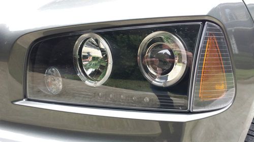 Instead of replacing it with the standard Charger bumper and hood, I upgraded it to the SRT8 Front bumper, Grille and Hood (the hood is Carbon Fiber and looks incredible!) I also added the "My Gig Navigation Entertainment System" to it as well. We also upgraded the wheels with OEM SRT8 Wheels and tires (They only have 300 miles on them)