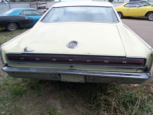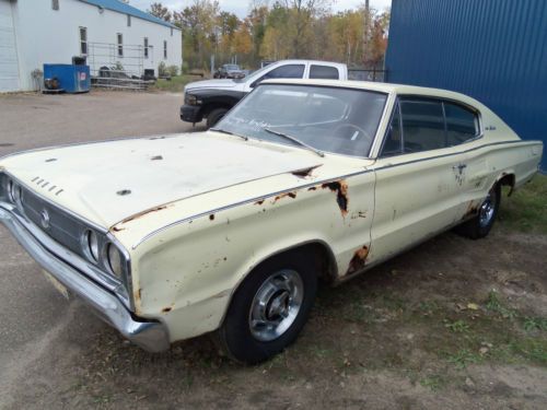 Ok! We have a 1966 Hemi Charger Barn find that is being offered up as a ROLLER! This car looks worse than what it is! The outside sheet metal is rusty but underneath is solid! The odometer reads 36,792 miles and was taken of the road in 1977! The gas and brake pedals and other "wear" items indicate that the mileage is correct! This car has all the correct Hemi pieces as it was pulled from hibernation complete and drivetrain was pulled for rebuilding! ( YES, we do have drivetrain but it is NOT included in this auction! Buyer of body will have first chance at drivetrain ) This car is rare to begin with but this one was built as a radio delete car with the standard 3;23 sure grip which would definitely make it even mote rare! Pictures will show that this is an original paint car with no accidents, so nothing is hidden. what you see is what you get! Hubcaps are damn near mint! dash pad is not all cracked, headliner and sun visors are in nice shape! Drivers seat needs recovering and new padding but the rest of the interior is complete and in damn nice shape for sitting for so long! Some one replace the gas tank, rear leaf springs and installed all new brakes. We still have the original springs and go with car. The other reason we believe the mileage to be correct is the car still has the factory exhaust pipe in place except for 1 tail pipe that is missing!