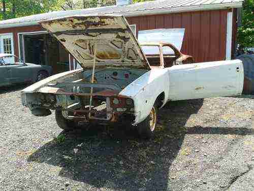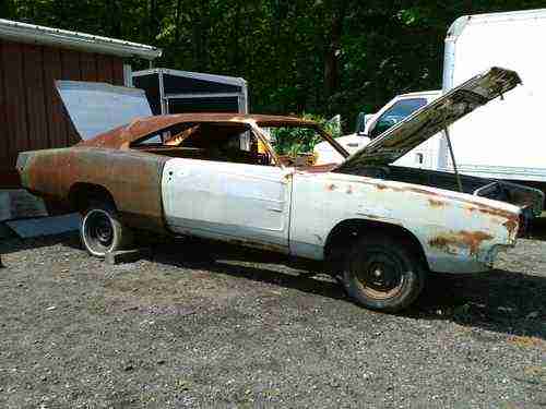 1968 Dodge Charger project car for sale. Originally came with 318 v-8, auto on the floor, factory A/C car with tinted glass, power brakes and power steering. The fender tag is intact and I can see it was gold with white Interior and black vinyl top. The car needs a complete restoration and is a good canidate. I do not have the motor but I do have the transmission. I have a grille but it needs repair. the rear in the car now is just in it to roll it around, I have the 8 3/4 housing that goes with it. I do not have the a/c box but the firewall is in great shape as is the entire front end. The rockers are also solid. The doors are in very good condition and are the original doors. The passenger fender is off of a 69 charger, the hood and trunk lid are rusted bad. The rad support, inner fenders, and front frame are in great shape. The car needs front floors, trunk pan, trunk extensions, outer wheelhouses, lower rear valance, quarter panels, and some work around the top rear window. I got the car as it is, the floors were cut out by previous owner as were the quarter panels, the panels on the car are not full and are just sitting on the car. The rear frame needs attention but its not totally gone. I have restored Chargers in worse shape than this one, I would keep it but I have way too many projects going on. I do have other parts to go with the car center console, seats, bumpers, lower front valance and trim. The car is rolling so it can be towed. I will answer any other questions the best I can. I also do restorations and if you would like to talk about buying the car and having me do the resto we can sure work out a deal, thanks and good luck.