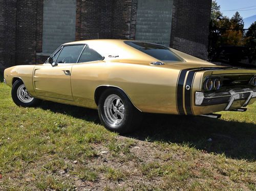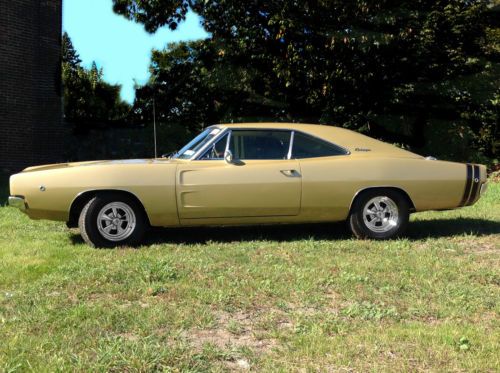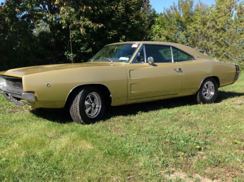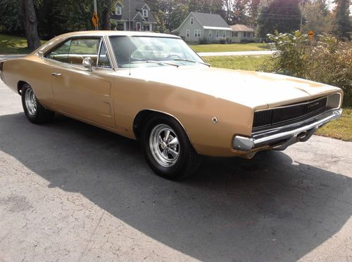 1968 DODGE CHARGER ORIGINAL 383 CAR NOW HAS AN E CODE 440 WITH AN ALUMINUM INTAKE, EDELBROCK CARBURETOR. THE ORIGINAL 383 FROM CARB TO OIL PAN IS INCLUDED WITH SALE. THIS ALSO IS AN ORIGINAL A/C CAR THAT WAS CHANGED OVER. I HAVE ALL ORIGINAL A/C PARTS TO RESTORE. THE VEHICLE COLOR IS ORIGINAL WITH ONLY ONE REPAINT EXCLUDING THE DOOR JAMS WHICH STILL ARE THE ORIGINAL PAINT. UNDERCARRIAGE IS RUST AND ROT FREE. ORIGINAL UNDERCOATING STILL PRESENT. ALL LIGHTS, WIPERS AND HEAT ARE FUNCTIONAL. I HAVE HAD THIS CAR ON LONG DISTANCE TRIPS WITH NO CHALLENGES. THE PAINT SHINES NICE AND IS OF GREAT DRIVER QUALITY WITH USUAL CHIPS WITH SLIGHT BUBBLING ON DRIVER'S SIDE ROCKER AND REAR QUARTER PANEL. INTERIOR FRONT SEATS HAVE BEEN RECOVERED AND A CD RADIO WAS INSTALLED. EVERYTHING ELSE IS CHRYSLER FACTORY ORIGINAL. THIS CHARGER DRIVES AND STOPS AWESOME SO FLY IN AND DRIVE HOME. DRIVE WITH US: http://youtu.be/7C8nHvcJn0w