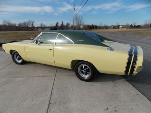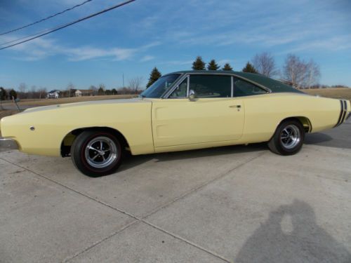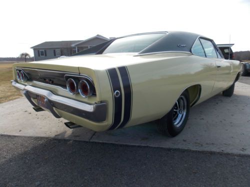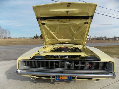 THIS CAR WAS COMPLETELY REDONE IN THE LATE 80'S!!! TRUE 9-28-1967 DATED 440 ENGINE ALL GAUGES AND FACTORY RADIO WORK IN FAMILY SINCE 1970!!!! ALL ORIGINAL BODY PANELS,TRUNK,AND FLOOR PANS ALL COLORS MATCH FENDER TAG A TRUE RARE R/T 440 CHARGER!!! AN ABSOLUTE GORGEOUS PIECE THAT IS 99% ORIGINAL AND HAS ALL MOPAR PARTS USED FOR RESTORATION IN THE 1980s THE PICTURES DONT DO THIS CAR JUSTICE,THE UNDER SIDE IS ALL FACTORY COLORS WITH ATTENTION TO EVERY FACTORY DETAIL THE FENDER TAG AND VIN PLATE ARE IN FACTORY LOCATIONS AND RADIATOR CORE SUPPORT STAMP MATCHES FENDER TAG A TRUE RARE MUSCLE CAR THAT LOOKS AS ORIGINAL AS IT DID IN 1968 WILL ACCEPT TRADES OF ANYTHING IN THE AUTOMOTIVE INDUSTRY CLEAN PAPERWORK IN HAND,READY FOR THE AVID DODGE COLLECTOR HAVE TO SEE THIS CAR TO BELIEVE!!!!!!! CAR BEEN IN HEATED STORAGE PAST 12 YEARS AND MILES SHOWN ON ODOMETER IS MILES DRIVEN SINCE RESTORATION AND NOT TRUE MILES ON CAR,MILES EXEMPT FACTORY A/C CAR,ONLY EVAP CORE IN DASH,AC COMPRESSOR,CONDENSER,LINES AND DRYER IS MISSING, HEATER CORE IS BY PASSED,WAS INSTALLED NEW DURING RESTORATION
