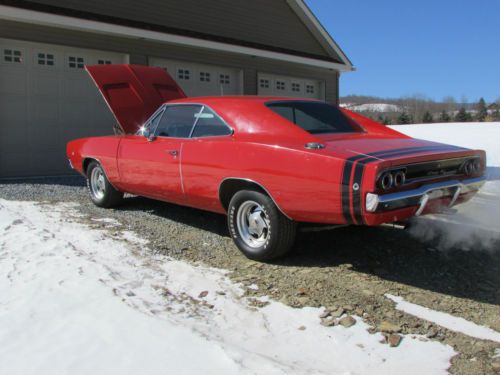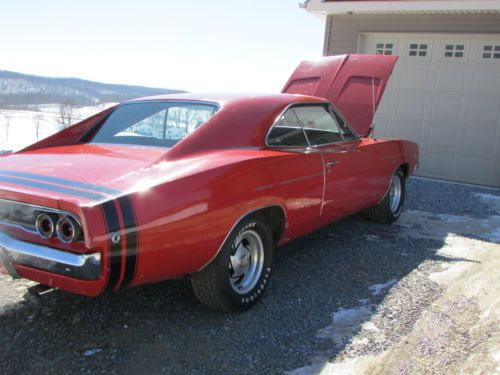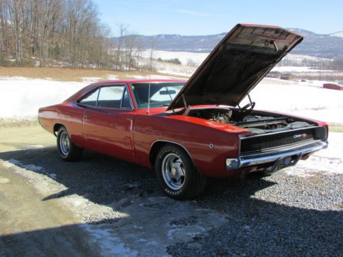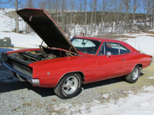 This 1968 Dodge Charger R/T is basically complete. 440 Cubic inch engine. 727 transmission. 8 3/4 323 gear sure-grip rear. Vin # XS29L8B22238 Not a numbers matching car. The 440 motor is not original, but it has the high performance exhaust manifolds. I have installed an Edelbrock carb. And I have installed a new fuel pump this year. The rear axel housing appears to be original. I had the 727 transmission rebuilt around 2000. The car runs good, and has a 2 1/2" flowmaster X exhaust with flowmaster mufflers and the correct exhaust tips to represent the original R/T exhaust. The radiator has been rebuilt, and I installed a transmission cooler on the car. The interior of the car is complete and mostly original. All the seatbelts work. The exterior of the car is in pretty good shape with some rust bubbles on the quarters and the doors. The headlights and lift-up covers work properly. The back bumper was re-chromed in 2000 along with front and back bumper guards. Trim is all in pretty good shape. Car was garage kept for the last 10 years. There is a small hole in the trunk floor, and the driver's side floor has been patched with metal. The car still has the original undercoating on the frame. The passenger side rear wheel brake cylinder is leaking, but I have 2 new ones to give to the new owner. This car is a very good car, which just needs a little freshening up. An R/T in this good of condition and mostly complete is not easy to find. I have a clear title for it on hand, and have been the owner of this car for close to 18 years. Please only serious bidders! A $1000 deposit is due within 24 hours of auction close, and full payment is required within 7 days of auction close. Buyer is responsible for the pick-up or shipping of the car. Car sold as is with no warranty or return. I reserve the right to end this auction at any time, because the car is also for sale locally. |