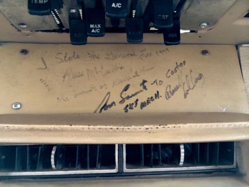 This car was once owned by Ben "Cooter" Jones from the original Dukes of Hazzard TV series. The dash (see photos) was signed by the cast when the car was given to Ben. Notice the "To Cooter," and "For Cooter," written by Daisy, Rosco, Enos, Cletus, stunt drivers, set mechanics, etc! The previous owner told me this car even appeared in one of the episodes of the original TV series, "Ghost of the General Lee". Check out the photo of the actor's (Russ McCubbins) signature who played the villain in that episode. He "stole the General Lee" (as shown in the photo) from Bo and Luke. However, I can not verify on paper the show appearance. There are hundreds of General Lees out there, but this is one of a kind. Cars owned by the original cast typically go for a LOT more money than I am asking for this one. It is a 318 car with automatic transmission and saddle/tan interior. It does have the Dixie horn and roll bar behind the front seats as seen in the TV series. Although the carpet is a little dirty, it will be shampooed this week. Please call or text Erik with any questions about the car: 309 - Five Three Zero - 5555 |