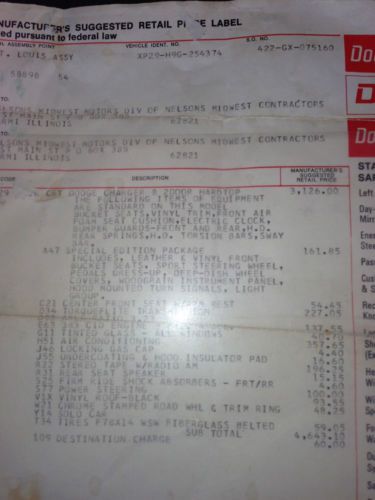 This is a 1969 Charger Hardtop with the Original Matching number motor and transmission. It runs but has been sitting for the last 7 years. It was started yesterday. I can email a video of it running. All the parts are here but a decal for the trunk and the chrome under the windshield. The windshield has a rock chip and it has a patch of rust under the back left fender that is rusted thru. I have taken a lot of pictures so you should get a good idea of the car. When I bought it they said the miles we right on the odometer and it does not look rolled over. But who knows. The transmission leaks from the boot seal on top. It needs a drivers floor pan. Door glass is all intact and doors close nice. The brakes do not work although I think they were replaced. I am a woman who just inherited the car so email me with anything you need and I will try to figure it out. Car was built in St Louis.Original Gold Color with Black top. Saddle interior.