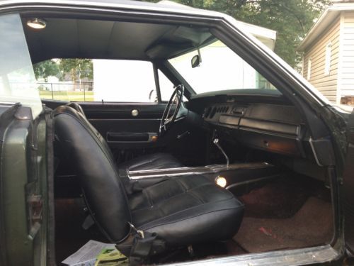 Car has an older restoration on it. It was originally blue but is now dark green. Black interior, seat and carpet are in good condition. Speedometer and Tach work, temperature and fuel gauges do not. Manual drum brakes and power steering. Vacuum operated headlight doors work. Both quarters were replaced and some bubbling is now appearing at the seam on both sides (see pics), otherwise it is rust free. Floor, trunk, and frame rails are in excellent shape. Car is not equipped with AC.