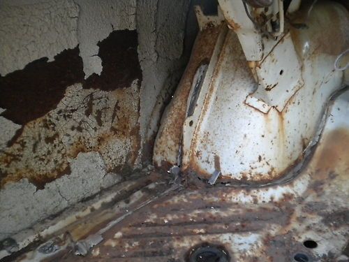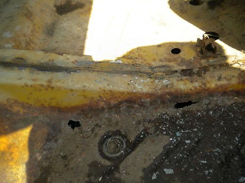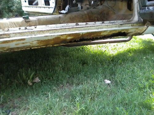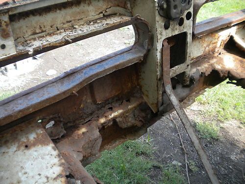 missing driver door glass. windshield is cracked . floor pan is pretty solid except for 3 rust holes in the left passenger floor board. frame looks solid.
