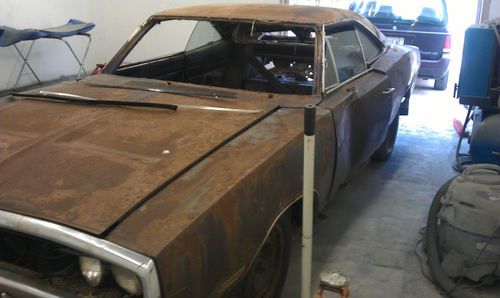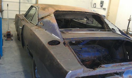 Up for auction is a 1970 Dodge charger. factory fc7 plum crazy purple car. white vinyl top and all black interior. also this car has the original 383 big block and 727 torqueflite trans... of particular note other than the rare color option is the console brackets on column shift car... this is a MAJOR project needing a total rebuild... LOTS of rust but other than the front seats all the major stuff is there even most of the trim. I realize the trunk deck lid and back glass are not in pictures but they are with car as well as an extra hood. please look at the pictures and feel free to ask questions... I was going to restore this one but life gets complicated... this car is currently inside but sat outside for MANY years.. I do NOT have a title for this car. will be sold with bill of sale. i have researched the car and know the title is clear and i have previous owners info (prior address and name). if you want to use this for parts thats up to you but given the rarity of the options... i would restore it.... this car will obviously have to be trailered and it will need a couple of guys to man handle it for loading. i can assist by making sure it rolls air up tires etc but you will need to bring a winch.. i wouldnt recommend a commercial shipping company for this one!!! vehicle must be paid in full prior to removal from premisis. if paying with other than cash, FUNDS MUST CLEAR BANK PRIOR TO PICKUP!!! i have had quite a few non paying bidders on vehicles lately... if you have less than 10 feedback you must contact me prior to bidding or i may cancel your bid. thanks for looking and good luck