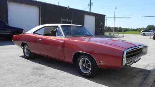 Very rare Dodge Charger RT 440 Found in a farm in 2005 and sat untouched until recently Loads of options 440 factory engine Factory AC Very rare burnt orange paint & interior White vinyl top Power steering Power brakes Console shifter Tach Clock Hide away lights that work Very nice old car with recent paint to factory's specs & new rugs make offer / trade 239-826-7500 phone calls only texts and/or emails will not be answered. |